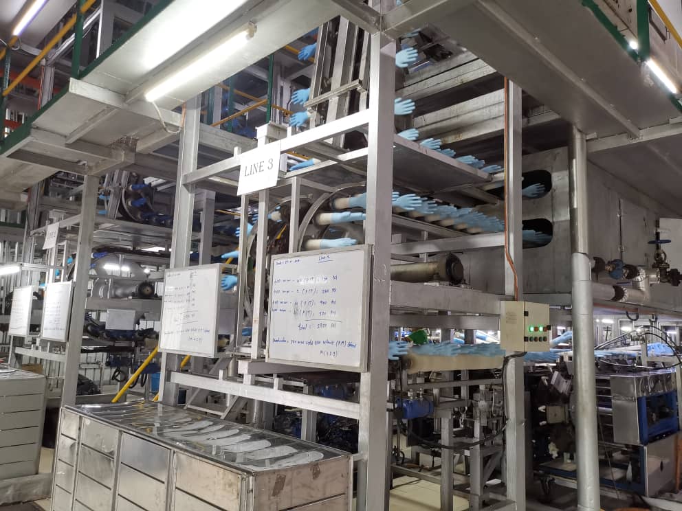 Powdered gloves: The leached gloves are dipped into cornstarch powder slurry to pick up a coat of lubricant that makes them easier to don. They are then further dried.