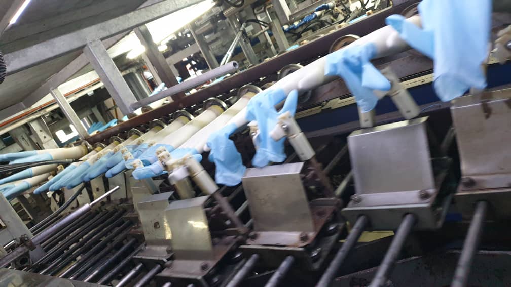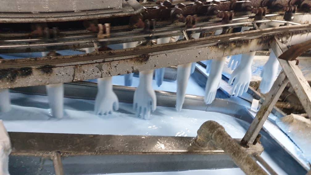 Post-cure leaching or dry-film leaching: The cured gloves are immersed in clean water tanks to remove more water-soluble substances, particularly proteins on the surface of the gloves.