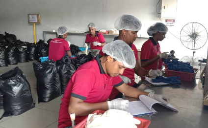 Powdered gloves: The leached gloves are dipped into cornstarch powder slurry to pick up a coat of lubricant that makes them easier to don. They are then further dried.